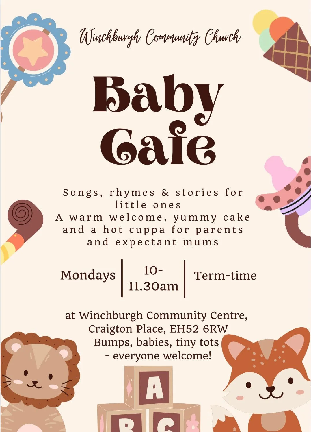 Welcome to Winchburgh Community Church, a new church in the heart of Winchburgh. We meet every Sunday at 10.30 in the Community Centre.